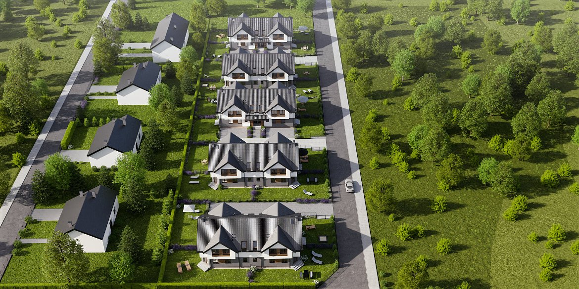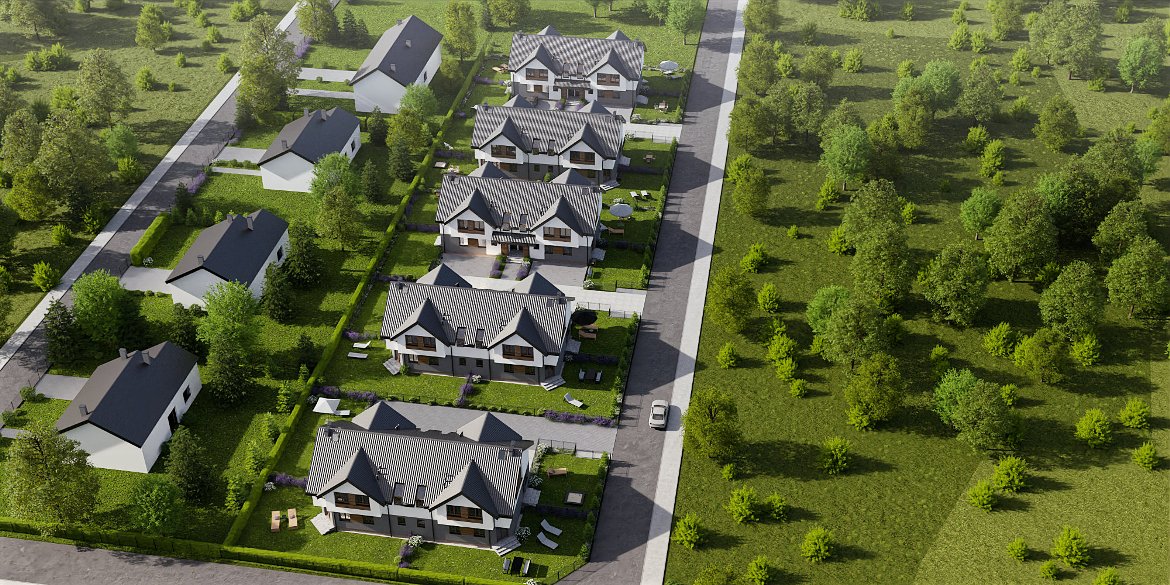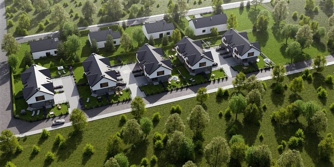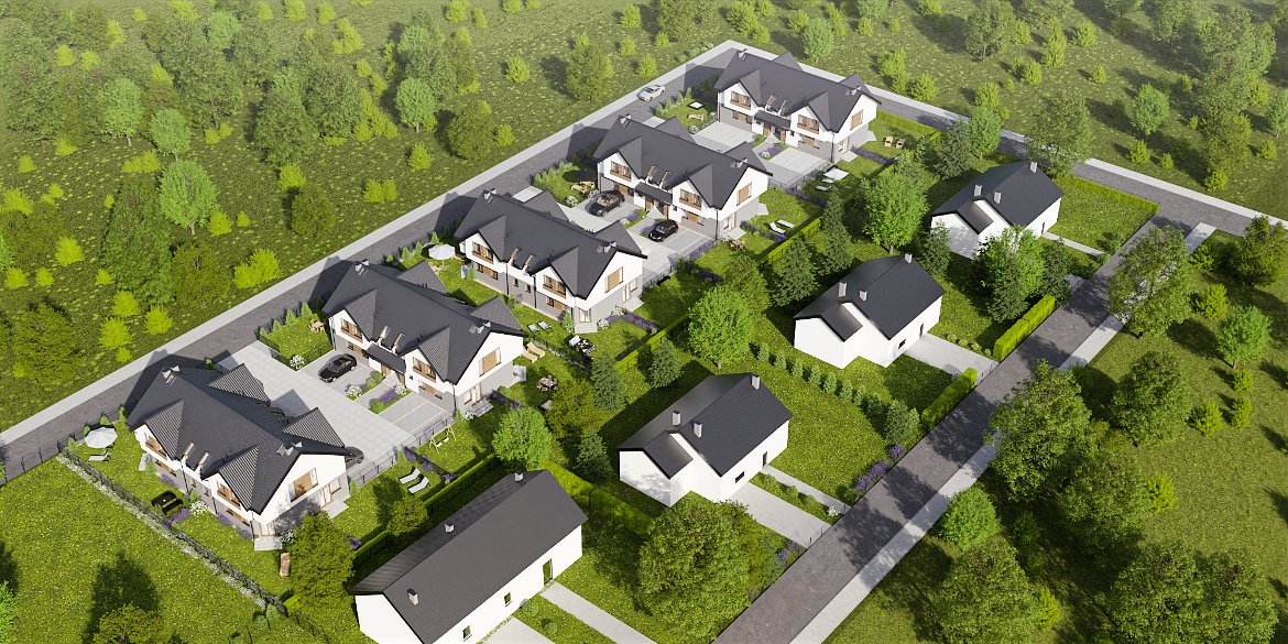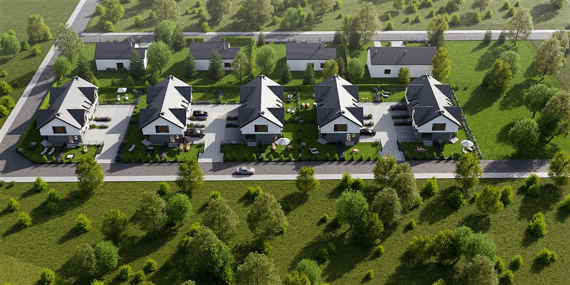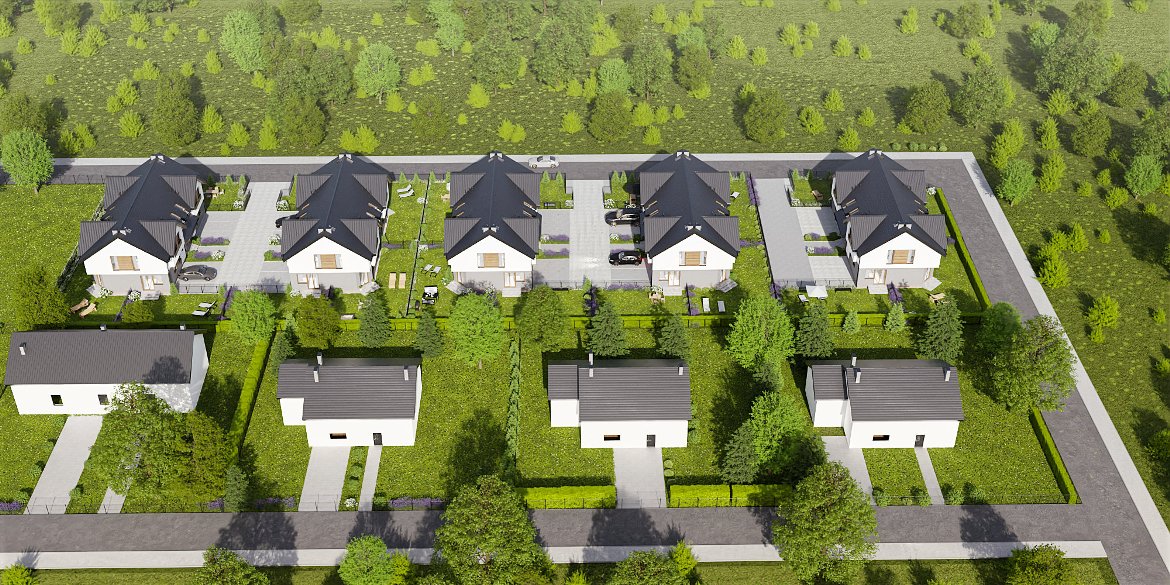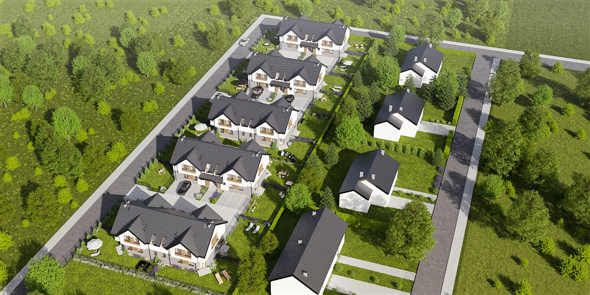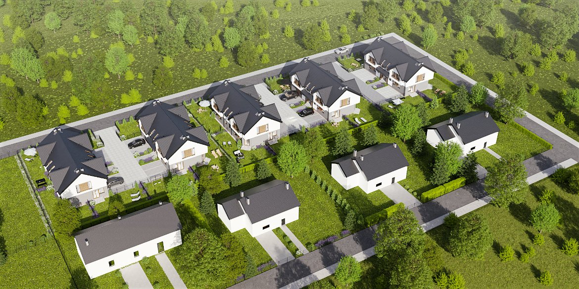 Na przyszłych mieszkańców czeka kameralne osiedle 5 budynków czterolokalowych, zlokalizowanych w spokojnej okolicy, która gwarantuje idealny odpoczynek po pracy.